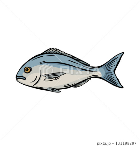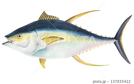 Yellowfin tuna (Thunnus albacares) watercolor illustration of isolated on a white background. Raw hand drawn tuna for printing, scrapbooking, cooking