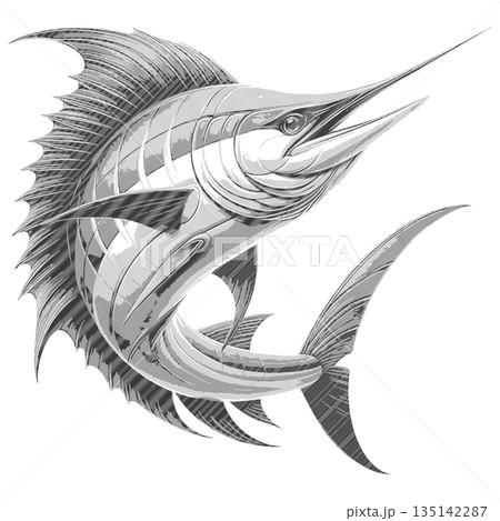 Detailed Blue Marlin Swordfish Engraving Illustration, Vintage Ocean Predator Fish Artwork for Logo, Tattoo, Marine Design, Sport Fishing Concept
