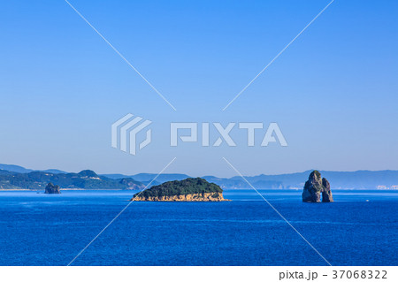 角力灘に浮かぶ島々 長崎県外海の青い海と空