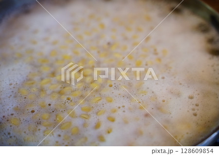 ゆでている大豆