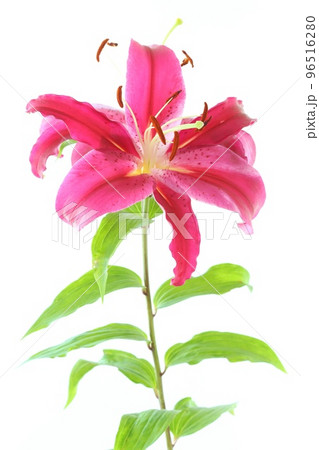 大輪のユリ オリエンタルハイブリッド系 濃いピンク色の花 明るい背景