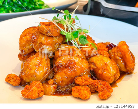 四川料理 宮爆大虾球(大海老の唐辛子炒り付け)