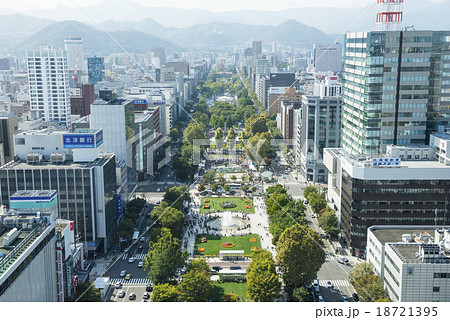 北海道札幌市 札幌市中心部 大通公園と札幌の街並み