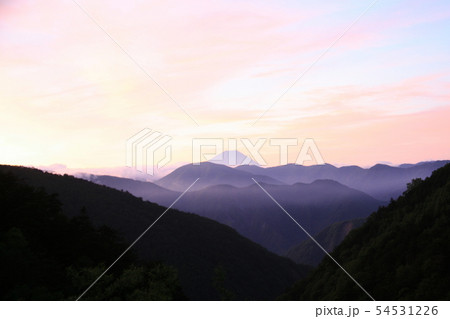 南アルプス 白峰三山テント縦走 大門沢小屋テント場から 朝焼けに映える霊峰富士を望む