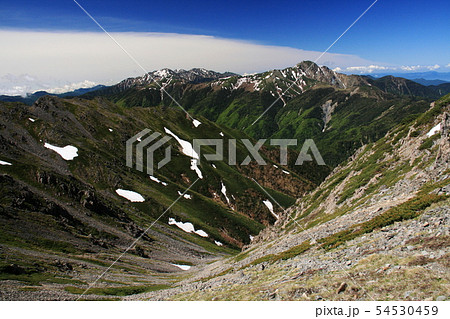 南アルプス 白峰三山テント縦走 大門沢下降点から 大門沢を望む