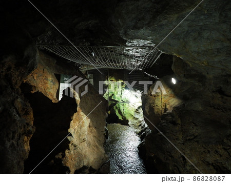 小平の里 鍾乳洞入口付近 紅葉の季節 秋の風景