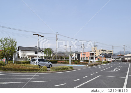 群馬県みどり市 大間々駅前観光案内所と秋晴れの空