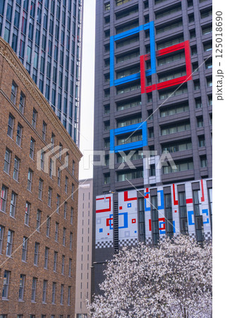 満開の桜とダイビル本館と関電ビルディング