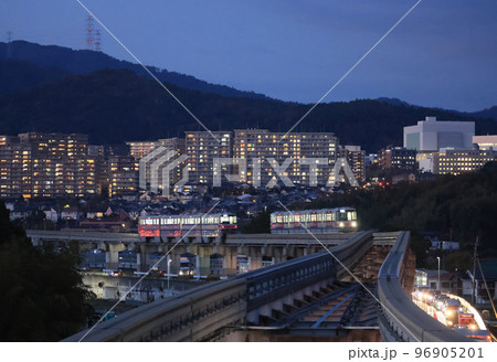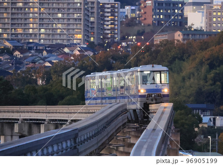 大阪モノレール 夕暮れの豊川駅付近を走る2000系