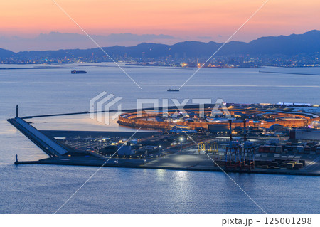 大阪・関西万博の夢洲と咲洲の夕景(大阪府大阪市此花区)