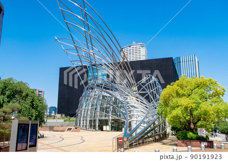 大阪府大阪市北区中之島にある文化施設 快晴の国立国際美術館と大阪市立科学館