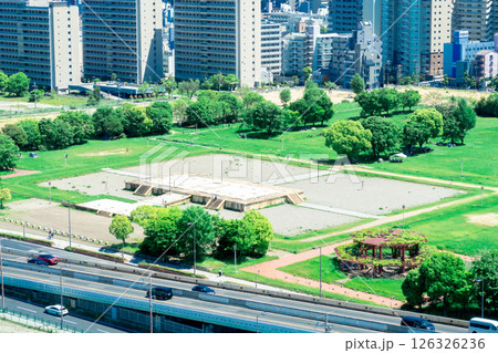難波宮跡とその周辺の風景