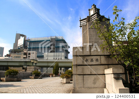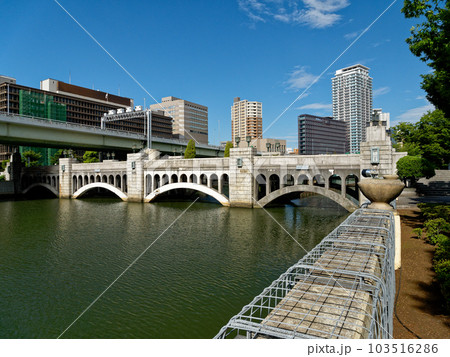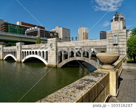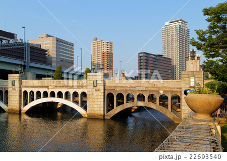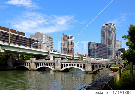大阪の堂島川にかかる水晶橋と周辺の風景