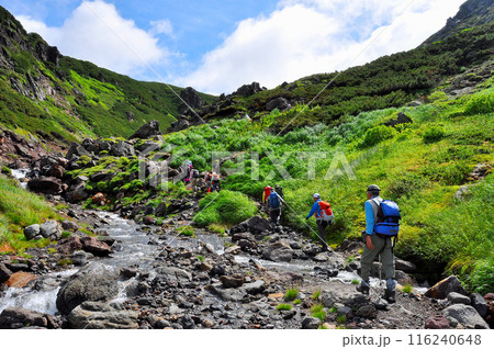 北海道 大雪山縦走 ビウケナイ沢 中岳温泉へ
