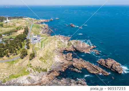 空撮「青森県」初夏の大須賀海岸の風景 種差海岸
