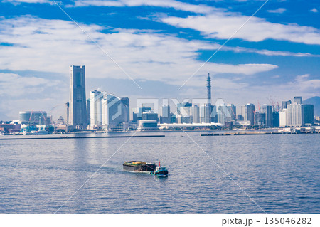 (神奈川県)横浜みなとみらい・大黒大橋からの眺め 行き交う船
