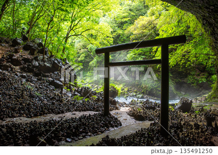 宮崎県、天安河原の鳥居のシルエット
