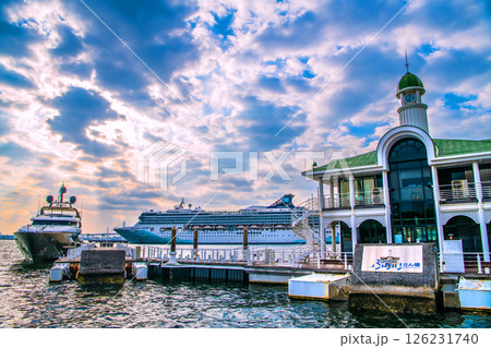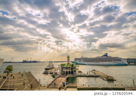 日本の横浜都市景観ノルウェージャン・スピリットやぷかりさん橋などを望む