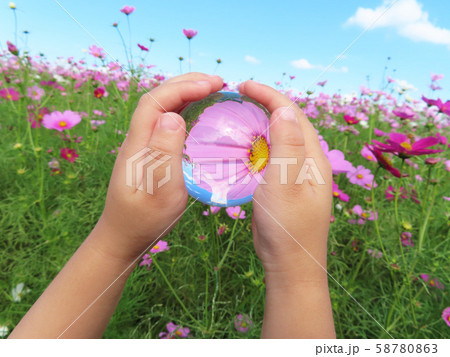 コスモスと子供の手