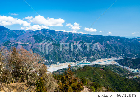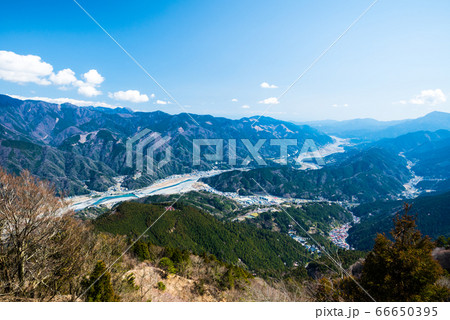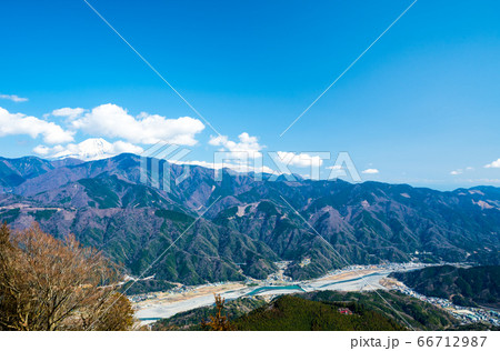 身延山山頂、南側展望台から眺める風景(山梨県南巨摩郡身延町)2020年3月