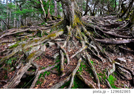 天子山地の毛無山 毛無山ルート 登山道に根付く