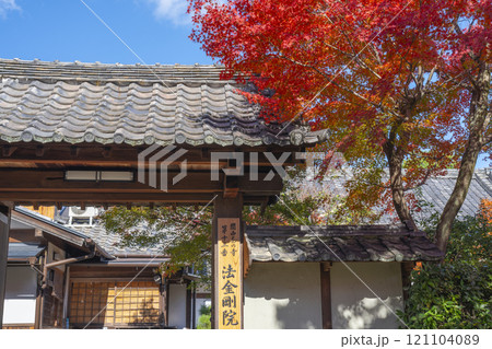 秋の京都 法金剛院 紅葉に包まれた経蔵