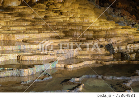 日本三大鍾乳洞 山口県美祢市 秋芳洞黒谷支洞 石灰華の滝