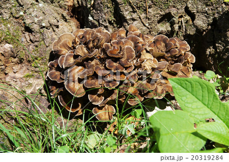 薄暗い林内の天然マイタケ