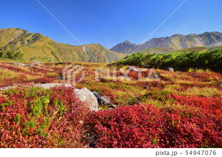 秋の立山黒部アルペンルート 紅葉の天狗平 イワイチョウ