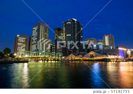 京浜運河と高層ビル群 天王洲アイルの夕景