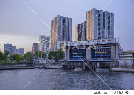 東京 品川区 天王洲アイルの都市風景 目黒川と目黒川水門