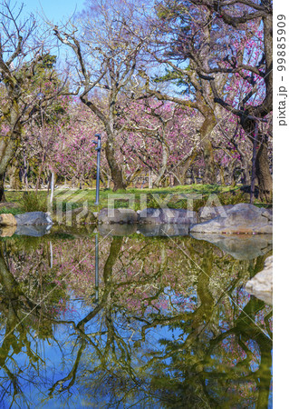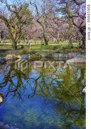 北野天満宮 梅苑「花の庭」 綺麗に咲く梅の花 水鏡