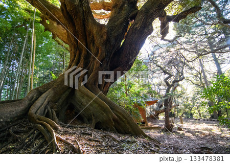 スダジイの老木と天神社社殿 千葉県匝瑳市