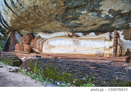 シーギリヤ・ロックの中腹の回廊、左の巨石の上は会議堂