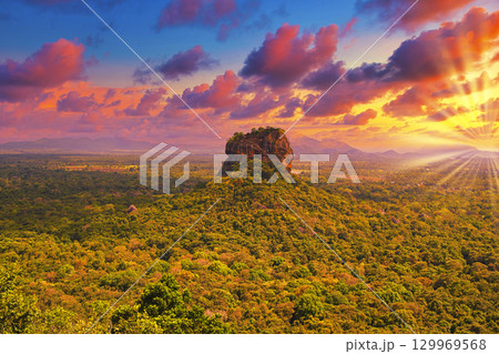 シーギリヤロックに差し込む太陽光線合成
