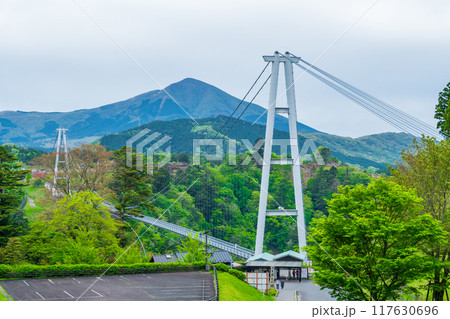 大分県九重町 九重夢大吊橋と新緑の緑