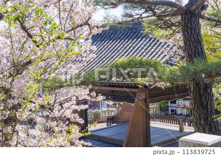春の神戸 北野天満神社 満開の桜と本殿の屋根