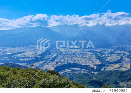 陣馬形山の展望台 南アルプス方面を望む 長野県上伊那郡中川村