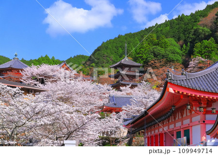 壷阪寺の桜 全景写真 奈良県