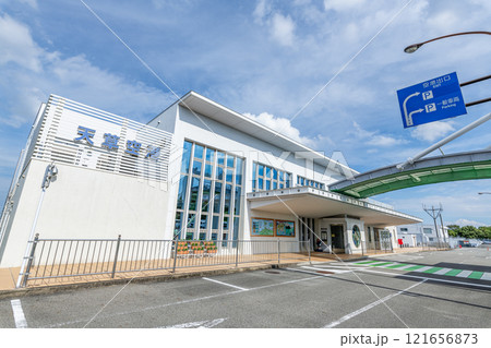 美しい夏の空を背景に天草ありあけタコ街道周辺風景「道の駅 有明(リップルランド)」観光名所