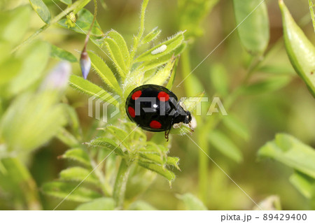 カラスノエンドウとナナホシテントウムシ