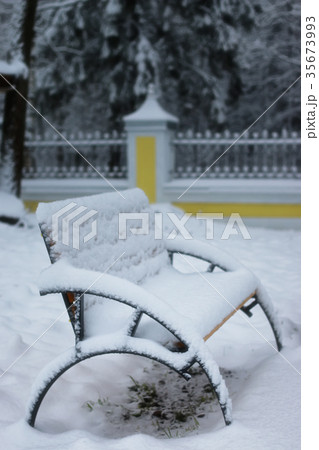 Snowing landscape, winter holiday concept - Fairytale fluffy snow-covered trees branches, nature scenery with white snow and cold weather. Snowfall in winter park. Soft focus