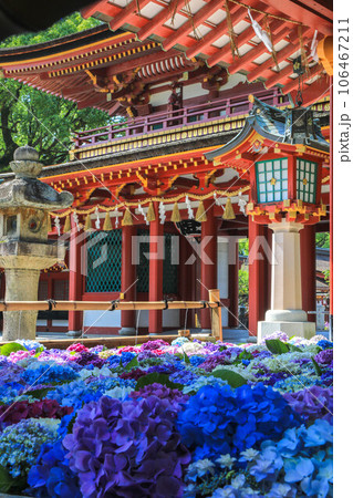 竈門神社の紫陽花飾り