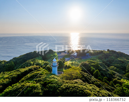 夜明けの太東埼灯台と太東岬(千葉県いすみ市)