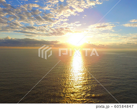 太平洋の夜明け〜ドローンで空撮(太東岬/千葉県いすみ市)