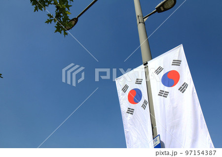 沿道に掲揚された国旗(韓国)