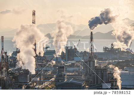 太陽に照らされるコンビナート