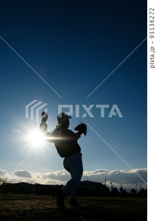 投球するシルエット
