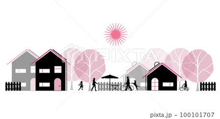 桜満開の省エネ住宅の街並み(ピンク+白)