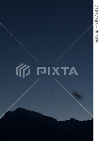 北杜市白州町、夕暮れの甲斐駒山上に輝く宵の明星